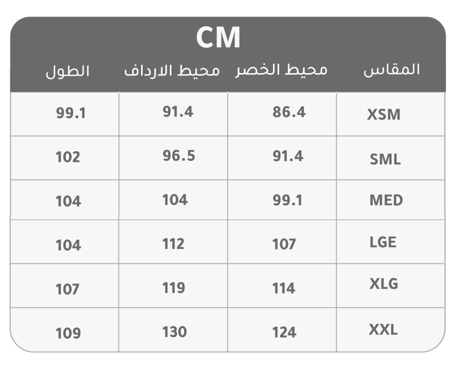 - المقاس: XS, S, M, L, XL, 2XL.